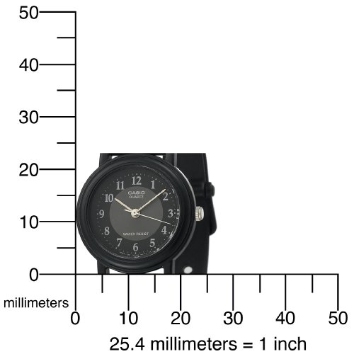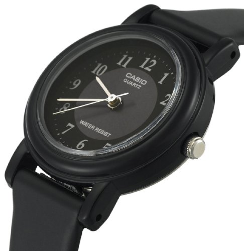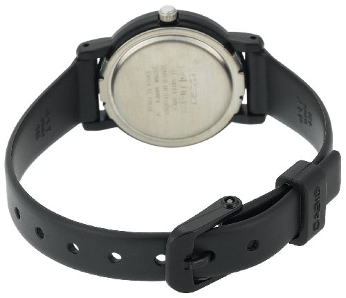 Taking cues from classic design, the quartz-powered Casio Women's Black Casual Classic Analog Watch #LQ139A-1B3 features a dramatic black dial face, which is encased by a durable mineral dial window and embellished with contrasting Arabic numerals and indexes for a stand-out effect. The black resin band comes equipped with a sturdy buckle closure and provides a sleek edge. Other details include a 26-millimeter resin case and a stationary, resin-and-stainless steel bezel. With its combination of classic lines and modern touches, this stunning timepiece makes a versatile everyday accessory.