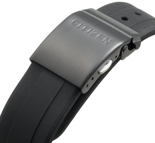 I bought a $10 Timex rubber band (make sure it's 20mm). Take the band to a jewelry store and have them canabalize the buckle, "arm" and rubber holders. Then switch them over to your Citizen. It should take about 10 minutes, tops. With this modification, this is simply the perfect watch - stylish, tough, functional, and no need for a battery!