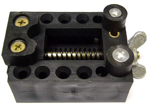 It is also drilled through with holes so that it can be permanently screwed to a benchtop, toolbox, or other jig, to firmly grip the watch case.