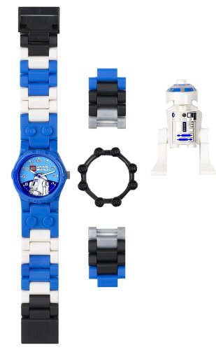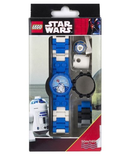 Telling time just got a lot more fun! Click the pieces together and create an awesome LEGO watch. The LEGO "Clic-Time" Star Wars R2D2 Watch is water-resistant up to 50 meters and features Japanese Quartz movement. It has a scratch-resistant mineral crystal lens, and is nickel and PVC free. Includes 22 tough-wearing LEGO links in assorted colors, 2 LEGO stud links, 2 interchangeable bezels and a Star Wars R2D2 minifigure.